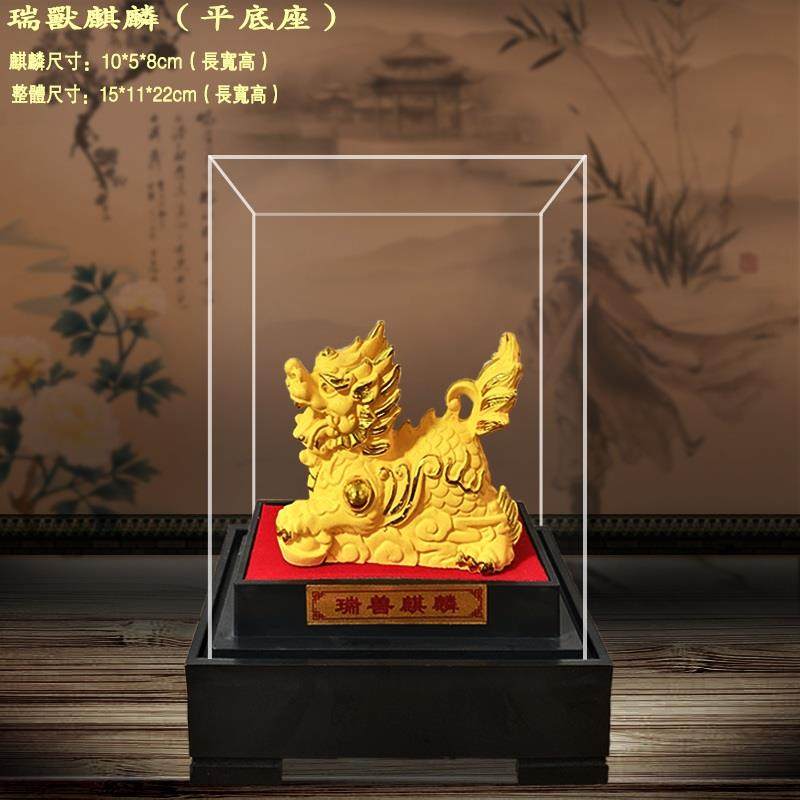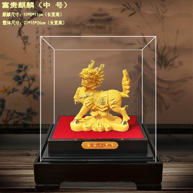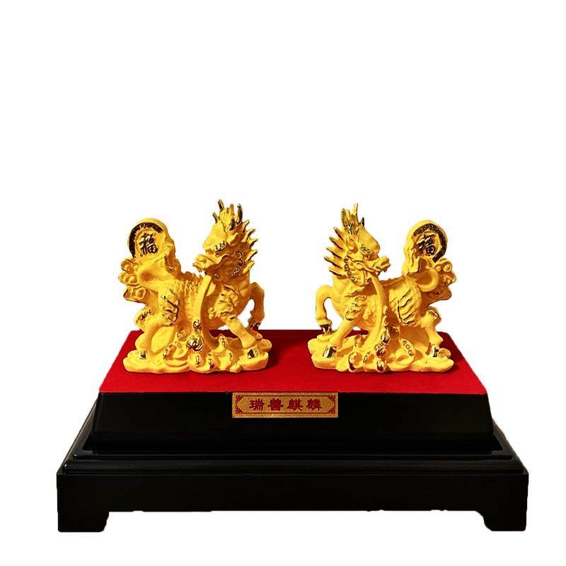 绒沙金麒麟摆件镇宅门口招财开业礼品一对家居客厅装饰品工艺品