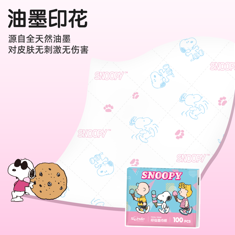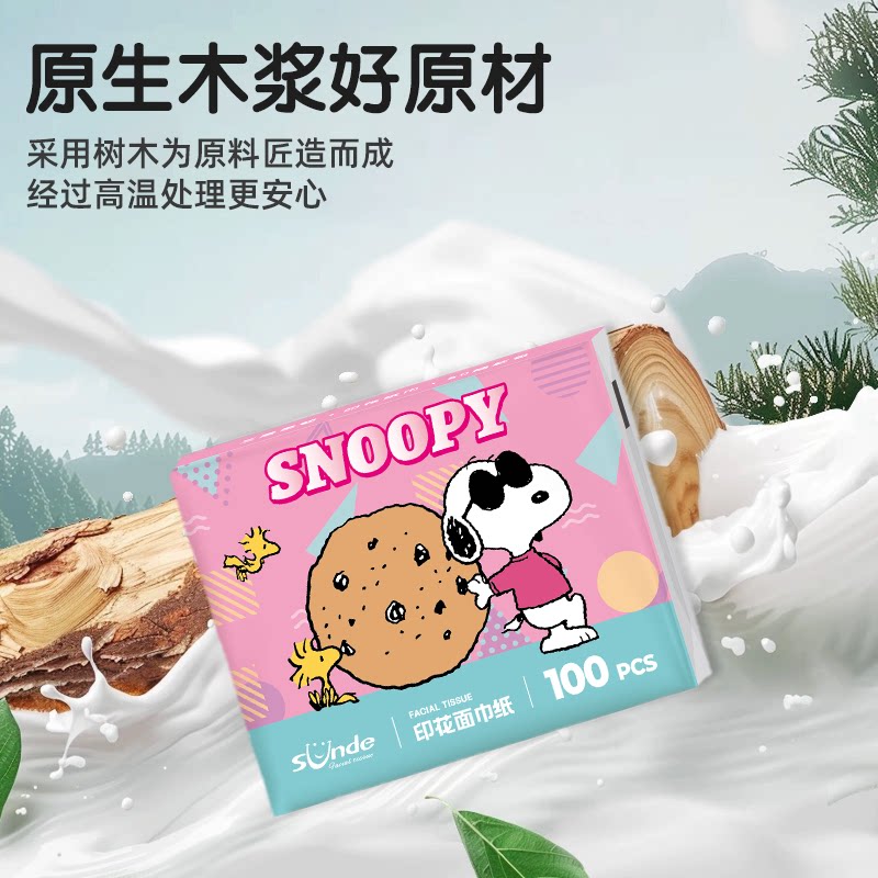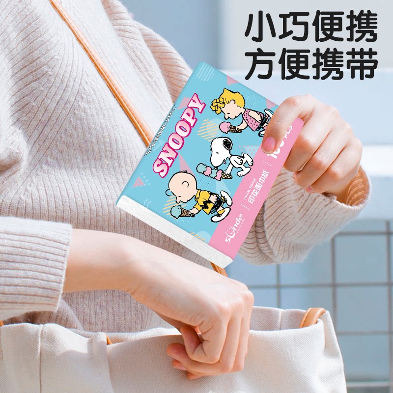 sunde史努比印花抽纸小包纸巾便携式儿童上学生箱装面巾餐巾纸抽