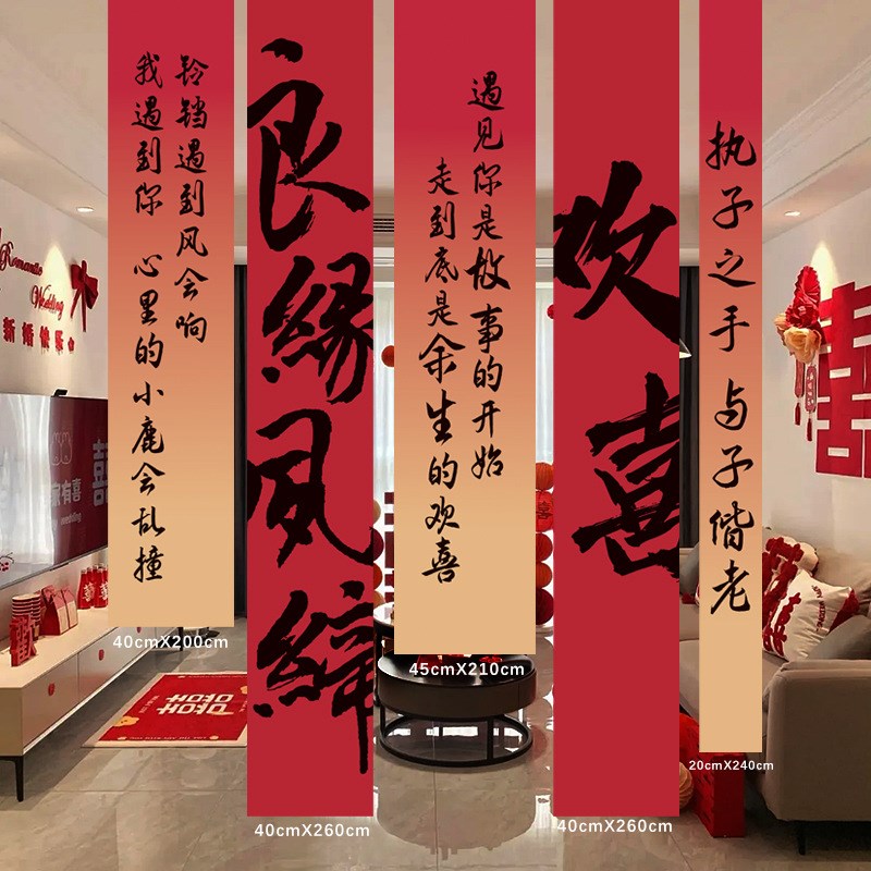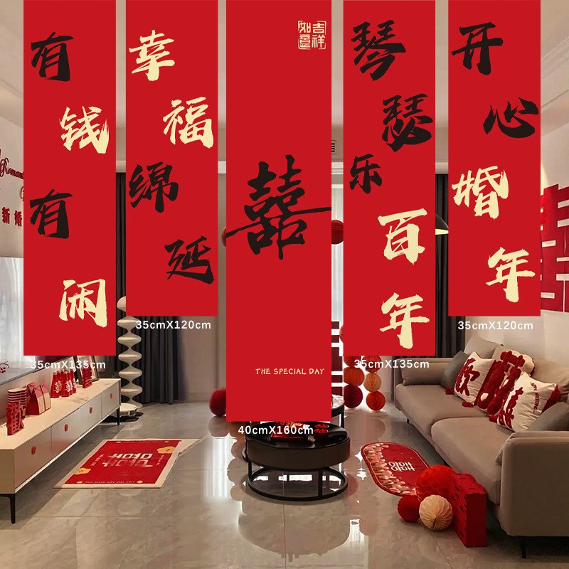 结婚礼喜字挂布婚房布置晨袍拍照道具卧室背景墙条幅订婚装饰用品