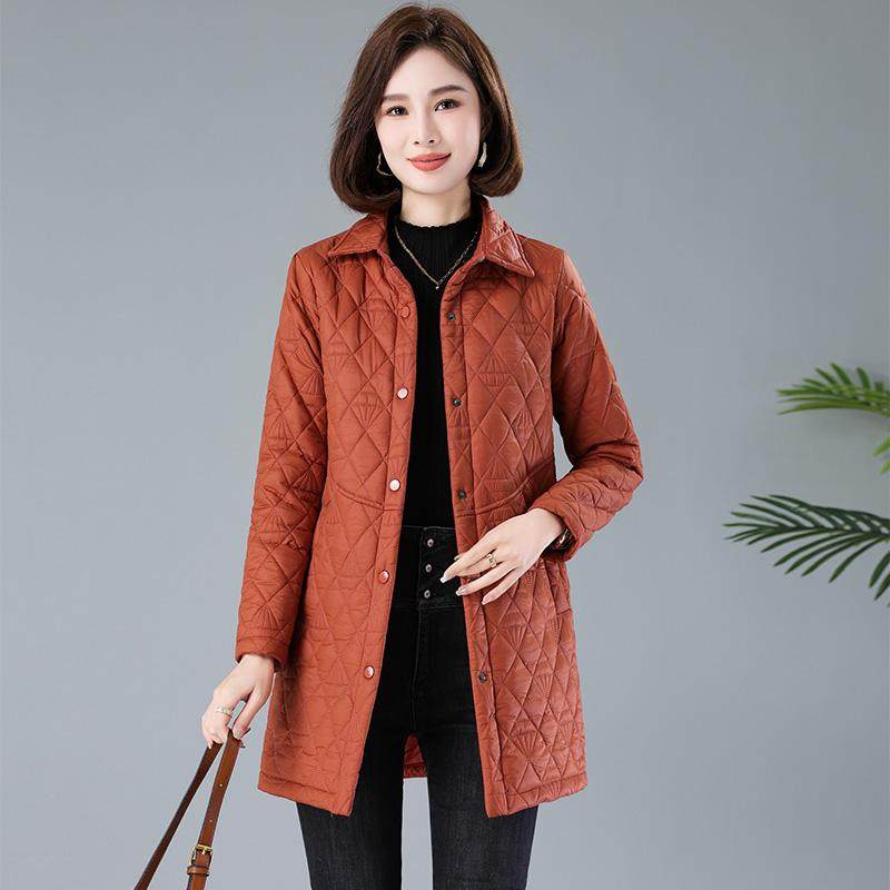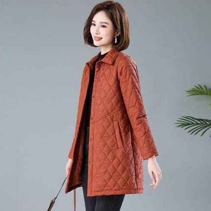 棉衣棉服女中长款2025秋冬新款中年妈妈洋气大码显瘦轻薄夹棉外套