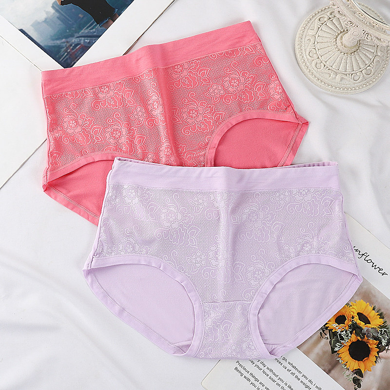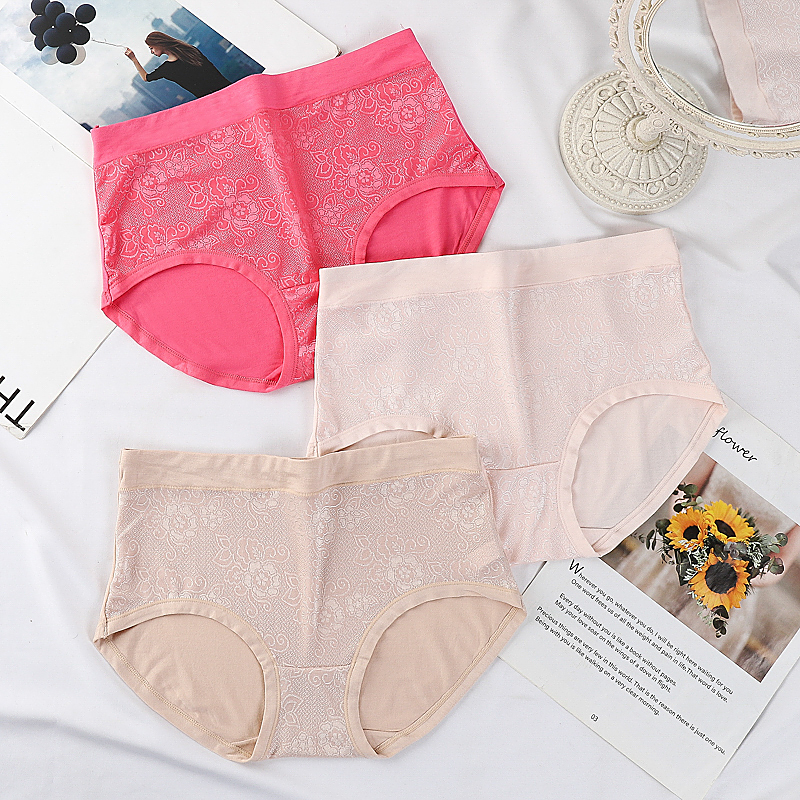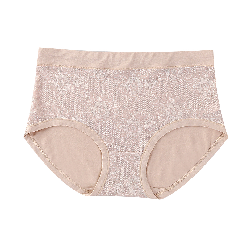女士内裤大码莫代尔性感棉竹炭面料胖mm中腰高腰提花透气妈妈内裤