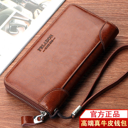 新款正品牛皮品牌男士真皮钱包大容量男手包女式长款拉链包手拿包
