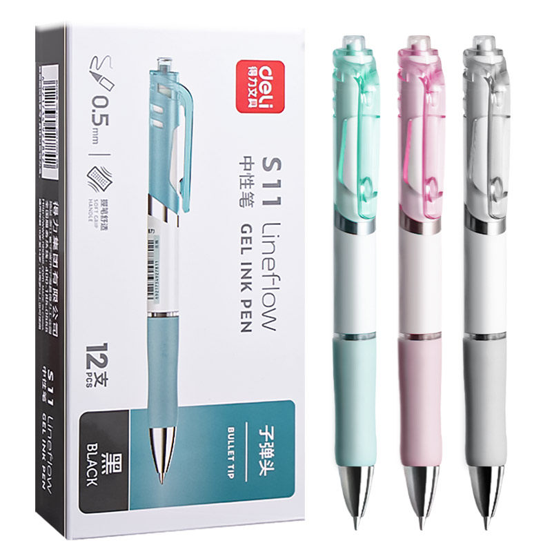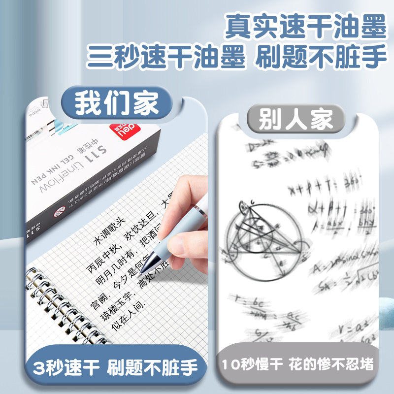 得力中性笔高颜值黑速干顺