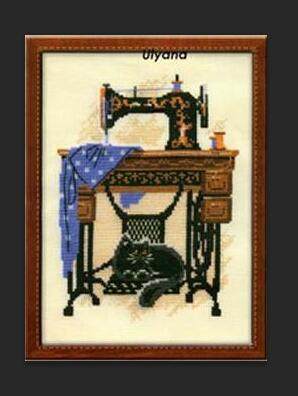 DMC绣线小小鱼十字绣套件 D842缝纫机下的猫精准印花手工刺绣