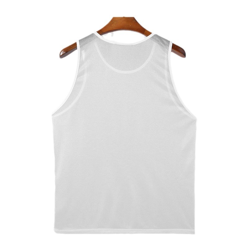 2025夏季欧美男士纯色网纱无袖上衣轻薄修身性感透视背心Men vest