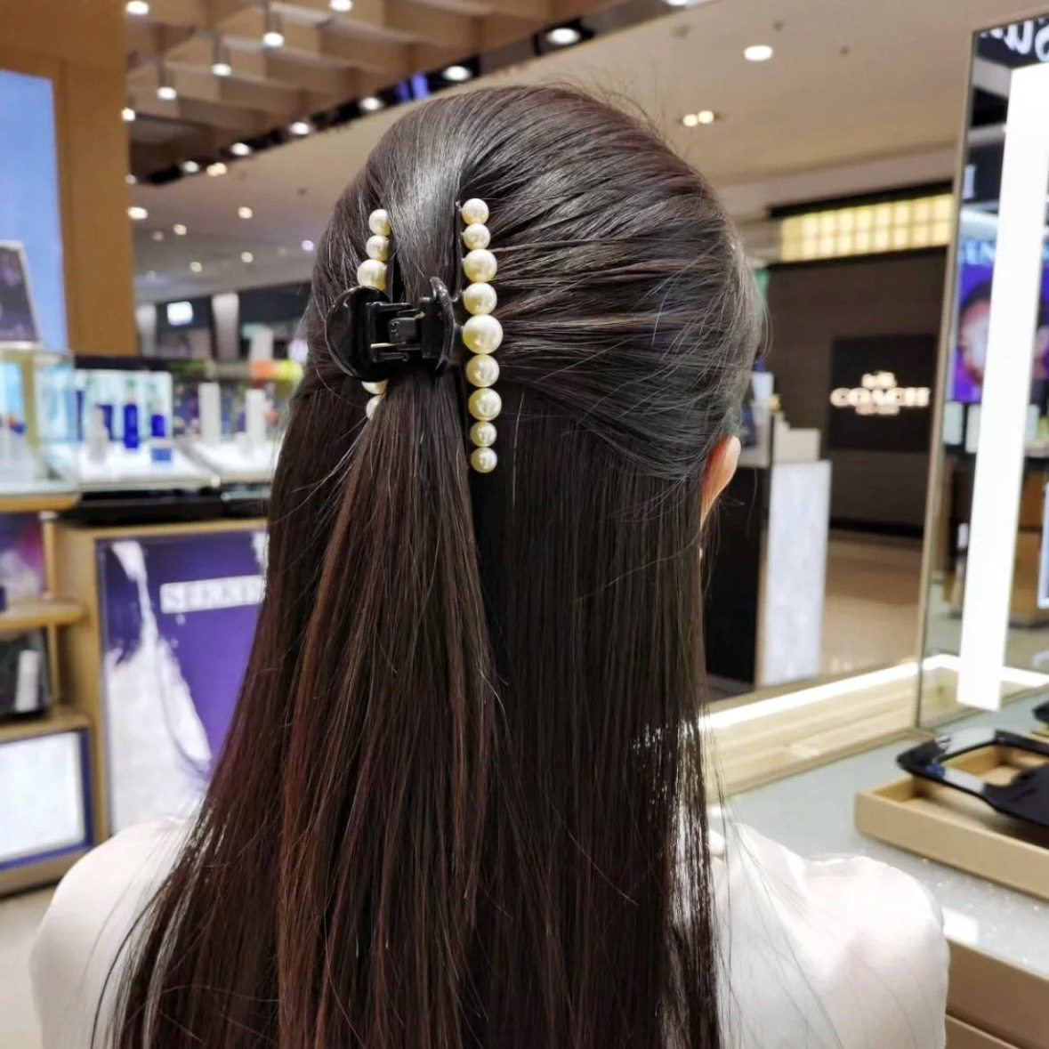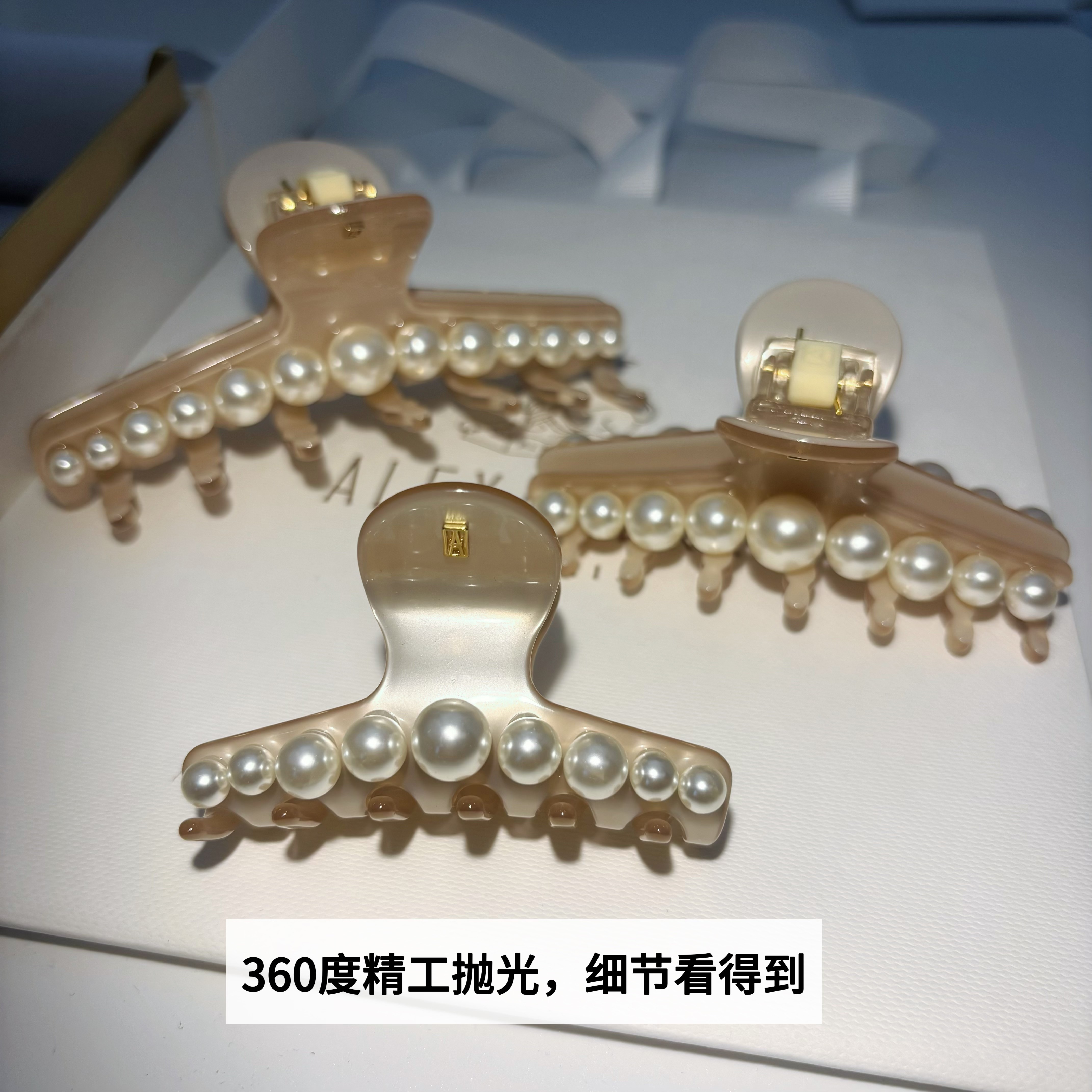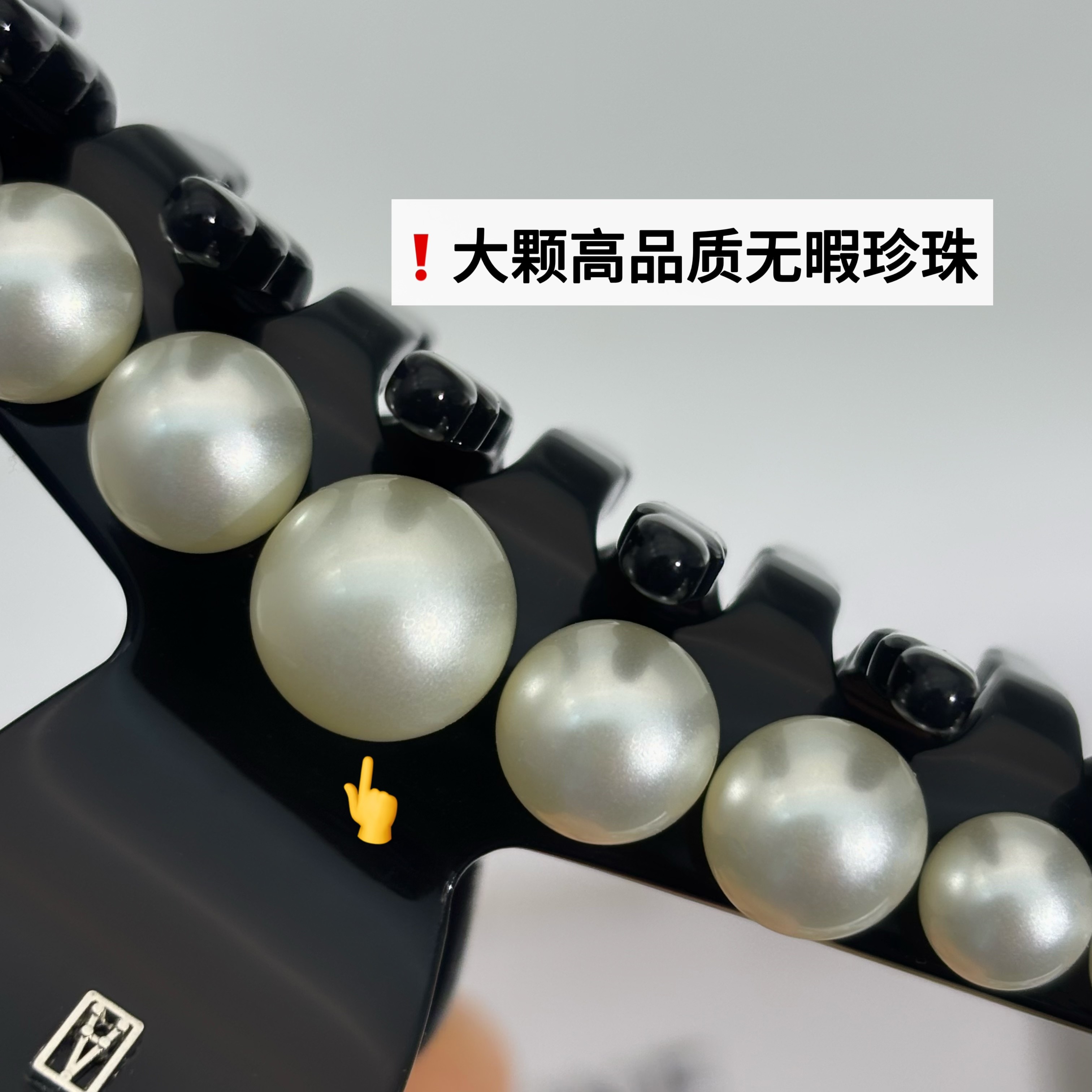 高级感珍珠黑白色醋酸抓夹大小号精致发夹亚历山大月华明星同款女
