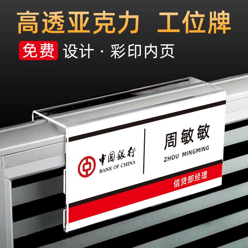 亚克力办公桌岗位座位挂牌双面屏风隔断牌夹立式骑马工位牌悬挂式
