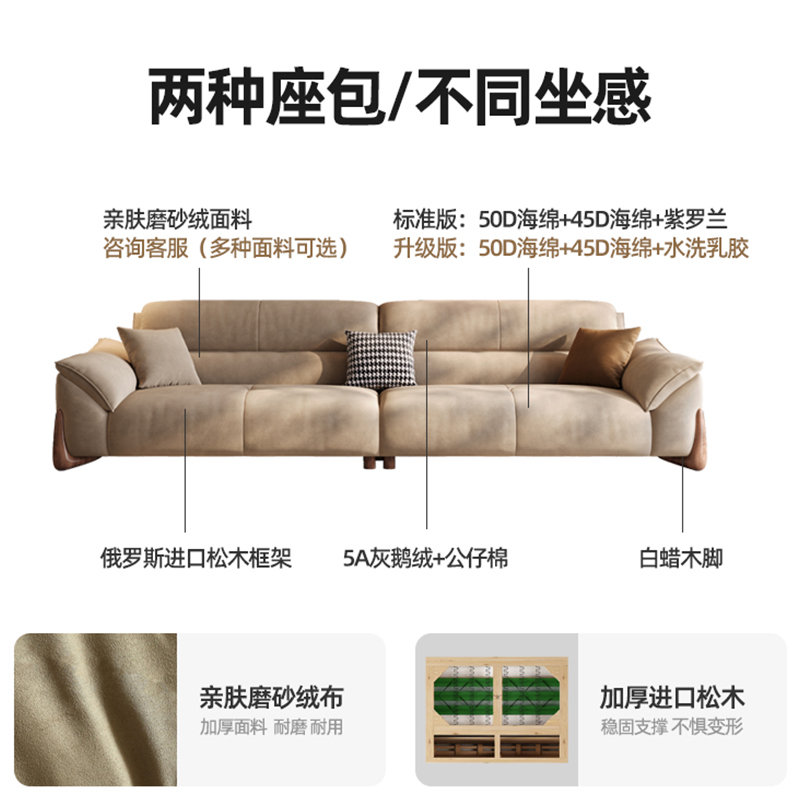 2025新款布艺沙发现代简约猫抓布三人位大小户型磨砂布艺直排沙发