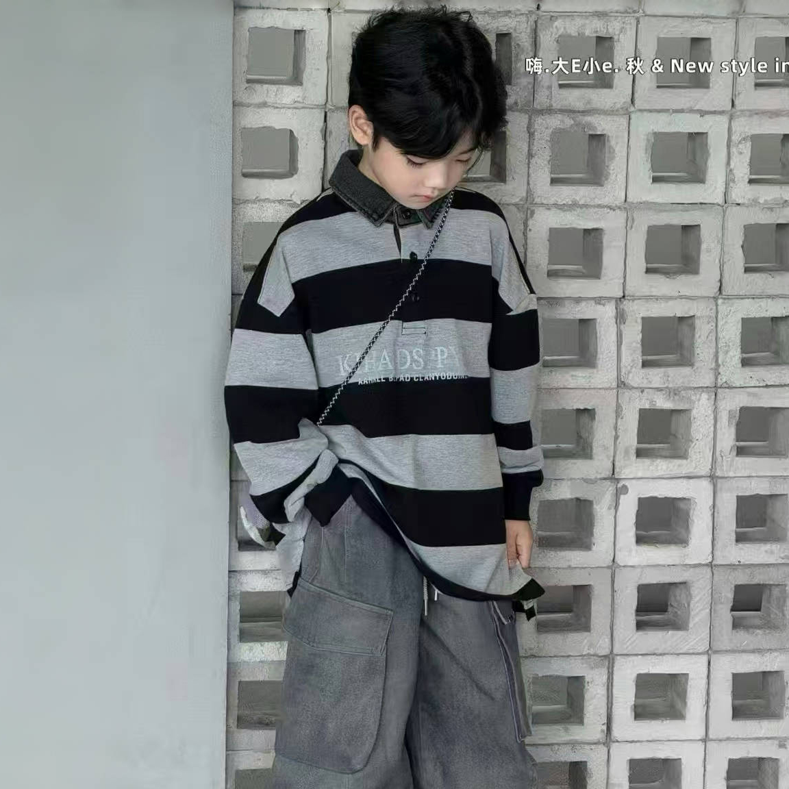 大E小e童装25秋装新款男童女童牛仔翻领T恤卫衣儿童全棉长袖25159