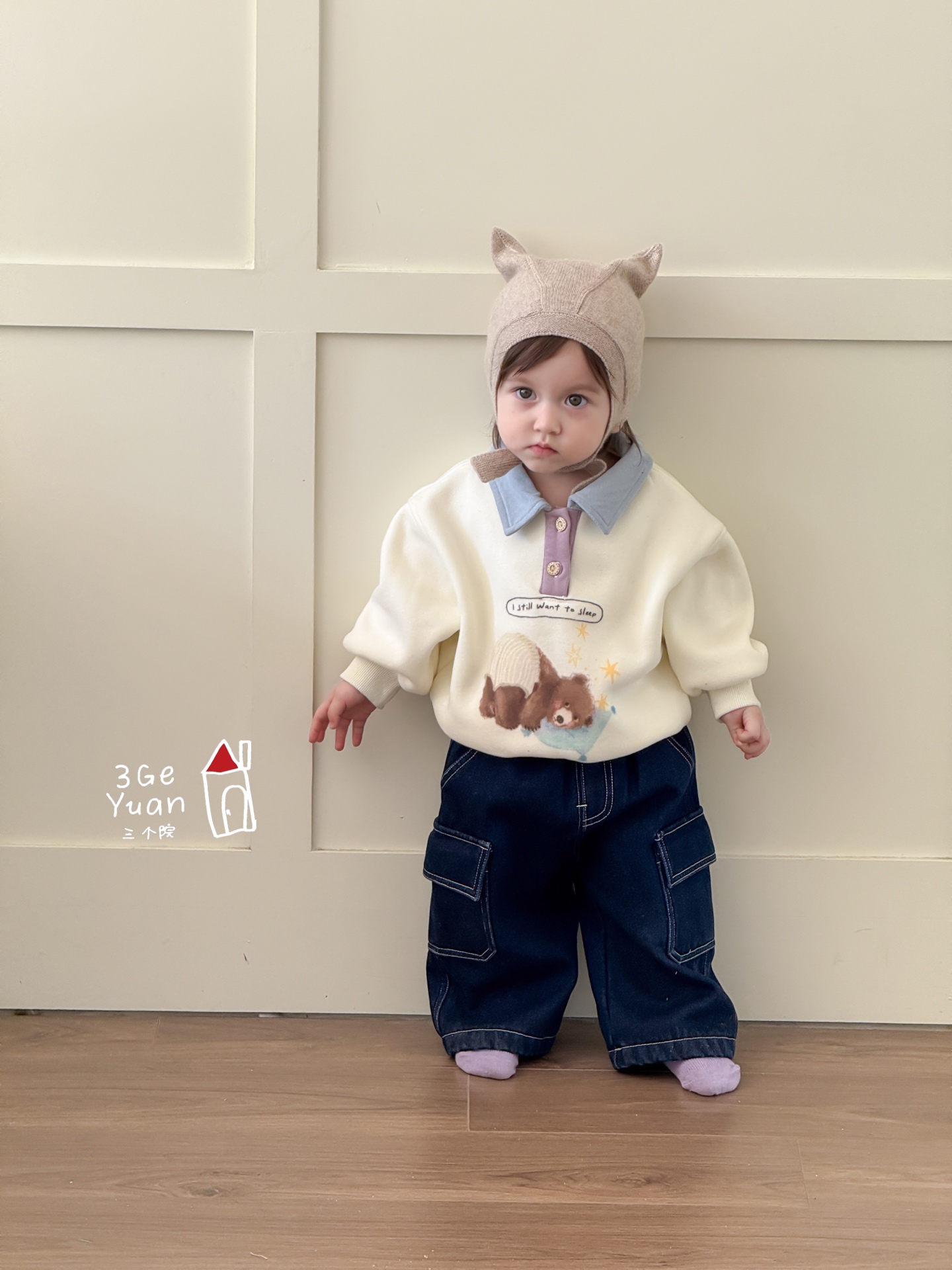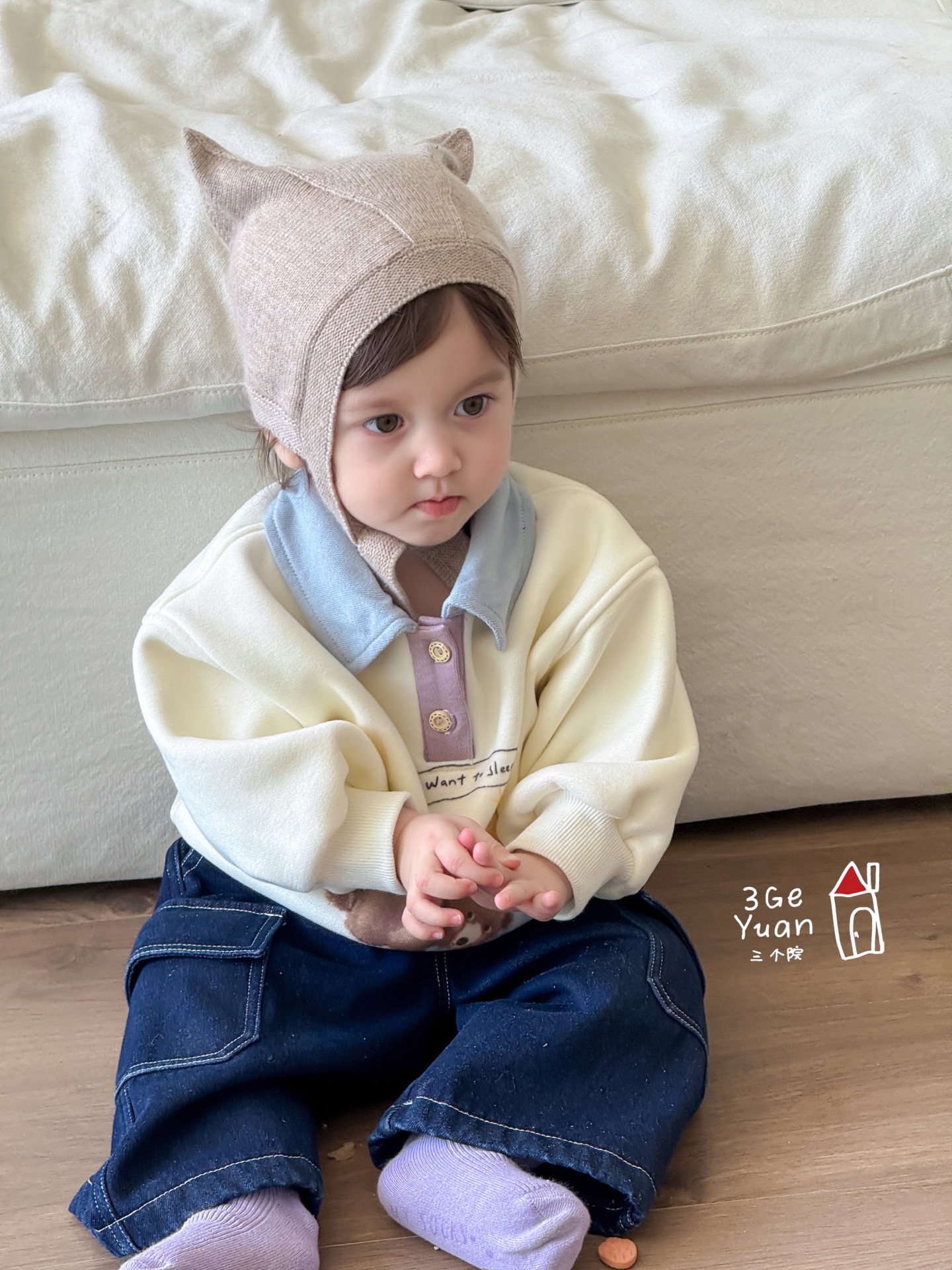 三个院童装撞色翻领狗卫衣加绒卫衣牛仔裤深秋冬款男女宝外出服