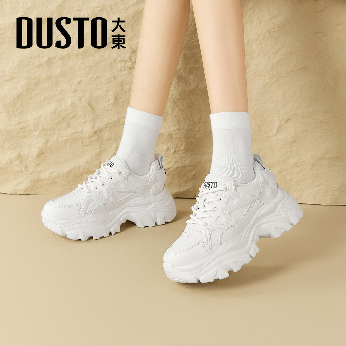 大东白色加绒老爹鞋女款2025新款秋冬鞋子厚底增高百搭休闲运动鞋