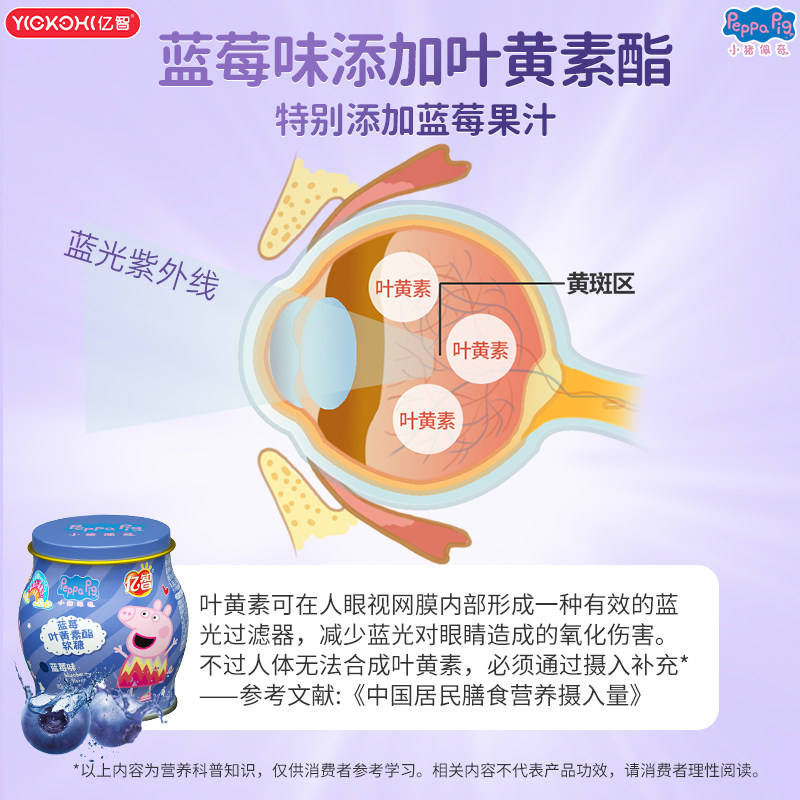 亿智小猪佩奇儿童营养软糖益生菌维生素C叶黄素宝宝健康零食糖果