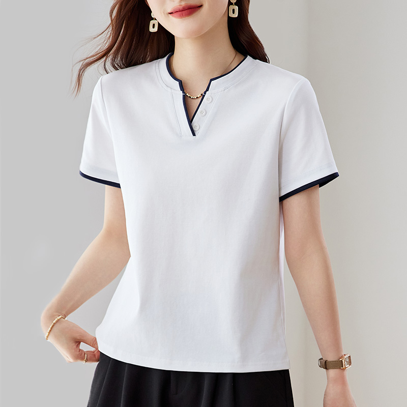 正肩v领短袖t恤女2025新款夏季爆款女装绿色上衣洋气减龄半袖体恤