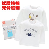 婴儿长袖T恤纯棉春秋薄秋衣0-2男女宝宝圆领肩扣套头无骨打底上衣