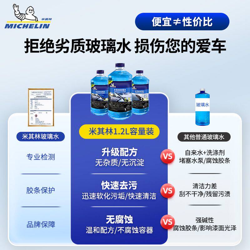米其林汽车玻璃玻璃水冬季车用大桶整箱四季通用去污油膜大桶装
