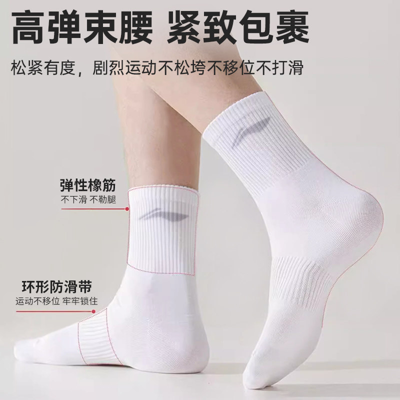 李宁袜子男运动中筒袜女加厚长袜专业跑步青少年抗菌防臭纯棉秋冬
