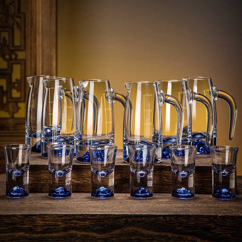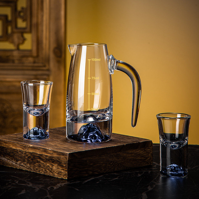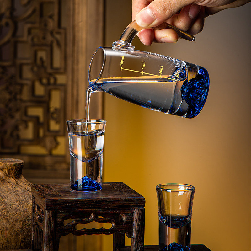 高档轻奢白酒杯套装家用中式水晶玻璃一口杯小酒盅二两分酒器酒具