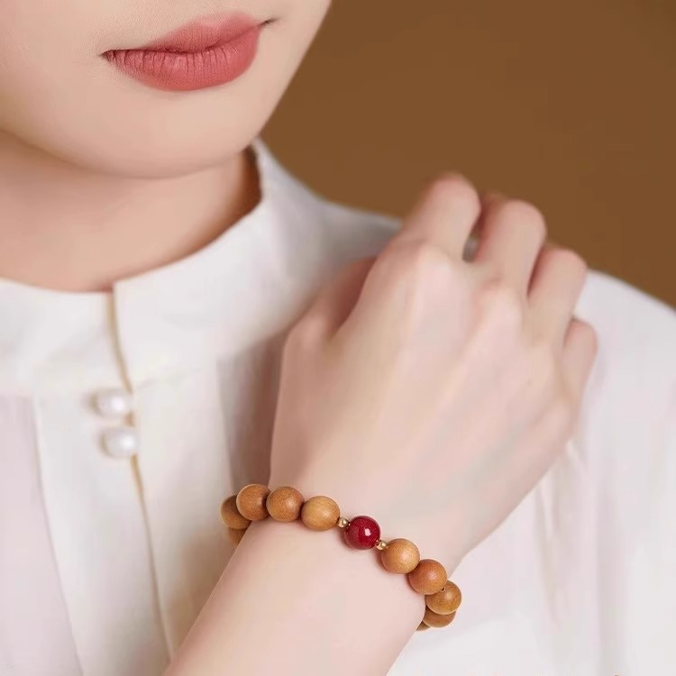 普陀山桃木手串女款念珠本命年佛珠朱砂盘玩男文玩手链木质护身符