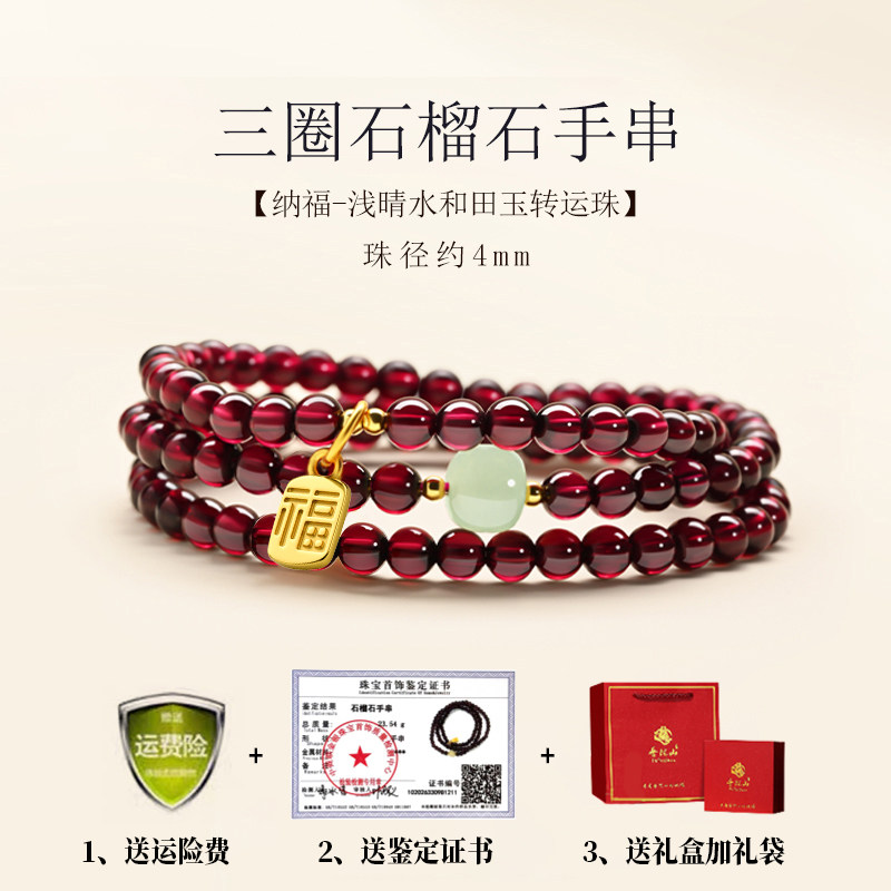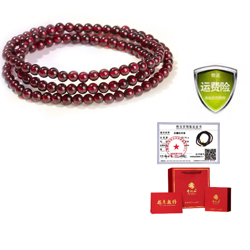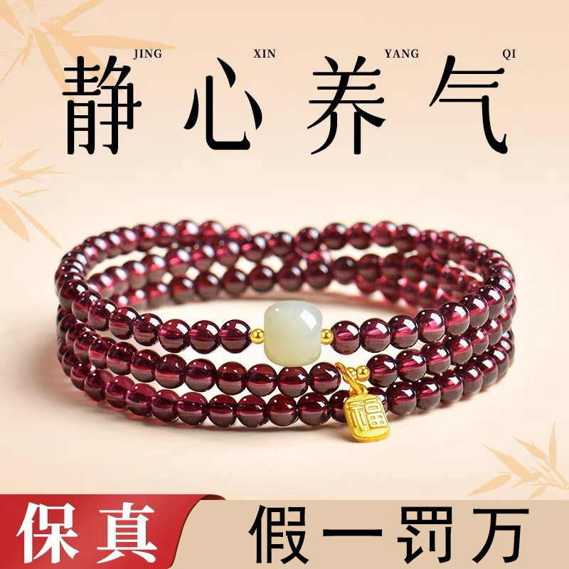 普陀山文创集纯天然红石榴石手串女款手链酒红三圈多圈官方旗舰店