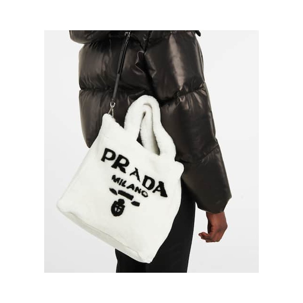 1h可退 香港直邮Prada 普拉达 女士 中号徽标毛羊皮手提包