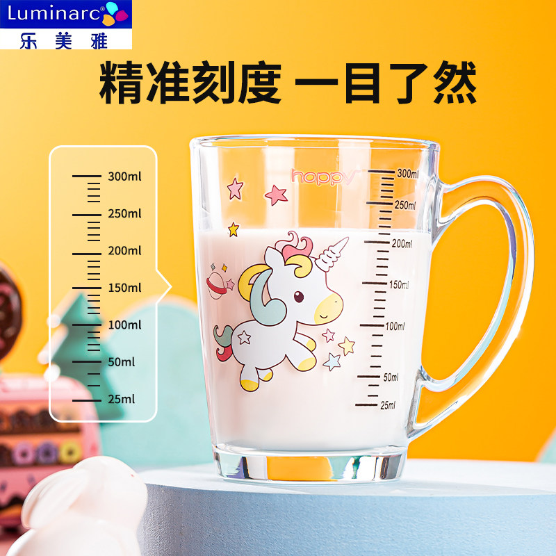 乐美雅钢化玻璃杯带刻度牛奶吸管杯家用儿童早餐杯带把水杯可微波