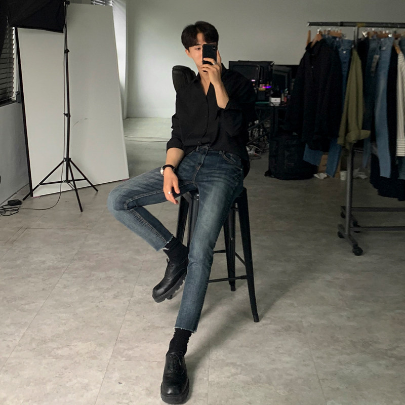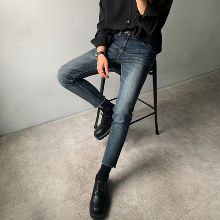 MRCYC秋季新款九分牛仔裤男韩系潮流修身小脚长裤休闲潮牌9分裤子