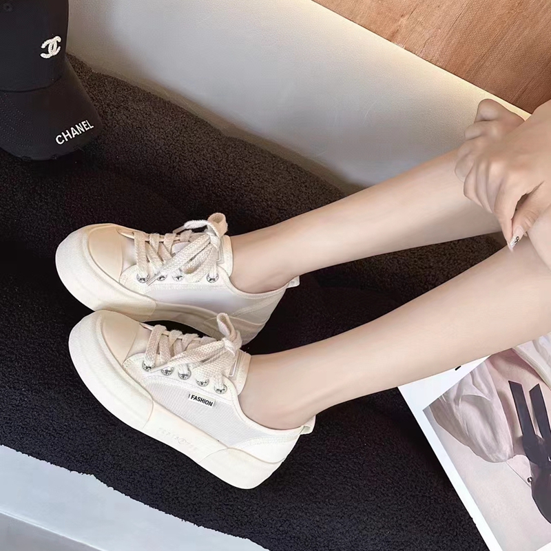 渊博2024新款厚底单鞋女坡跟真皮小白鞋透气网鞋休闲板鞋运动女鞋