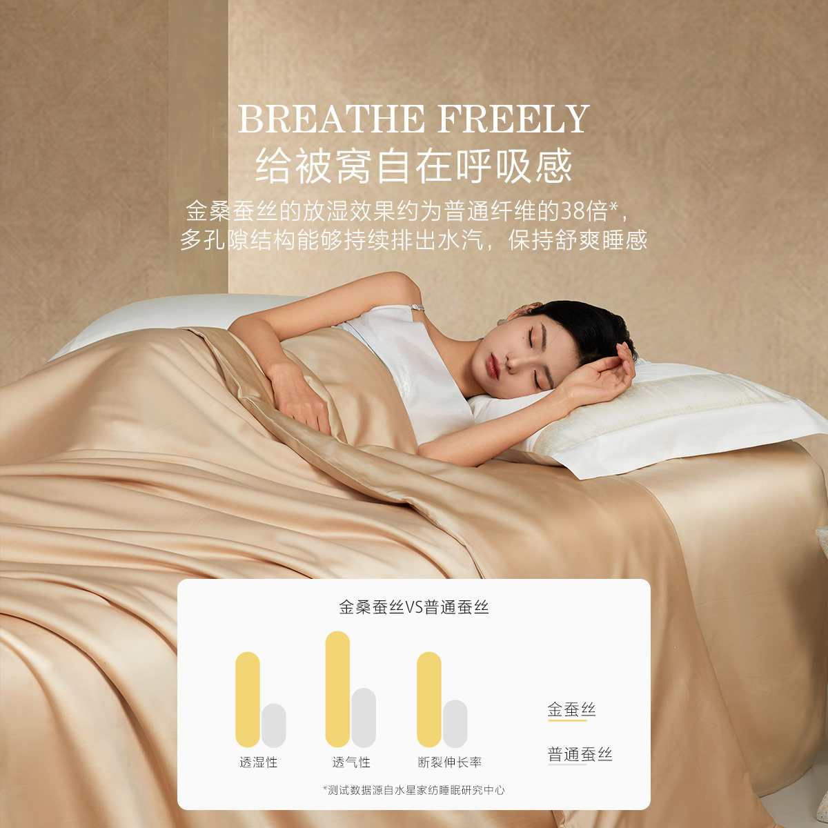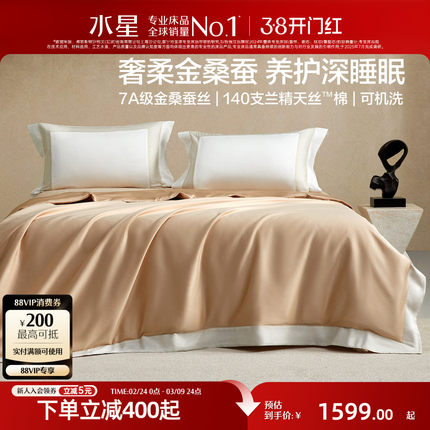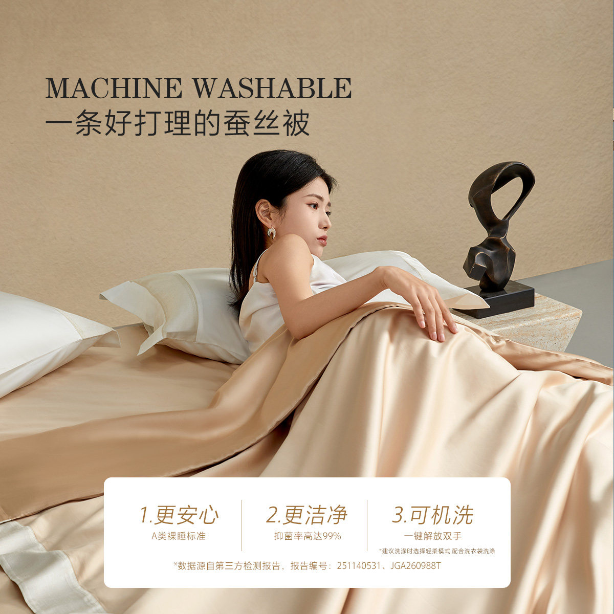 水星家纺夏被140支可水洗金桑蚕丝被芯抑菌凉感薄被子床品26新品