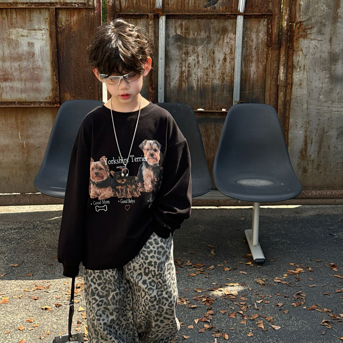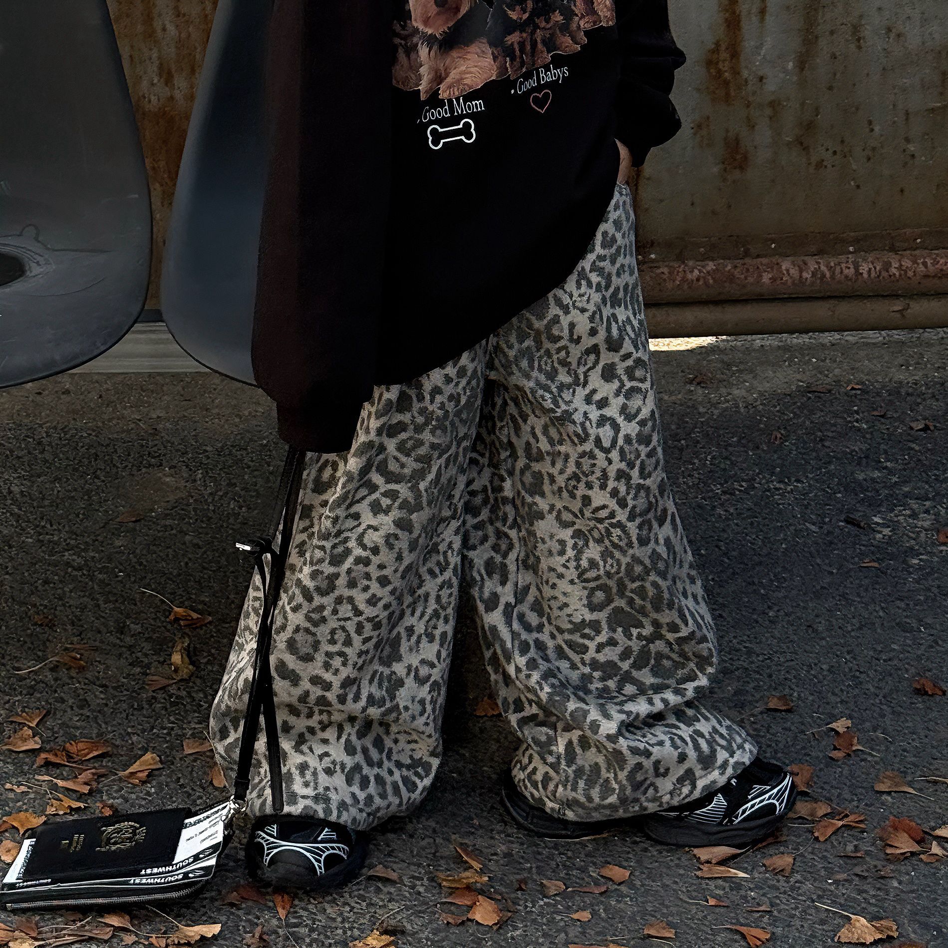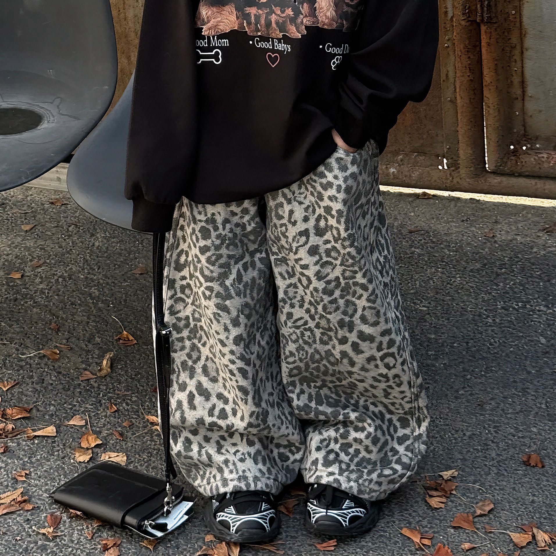 2025冬季新款儿童美式复古街头感加绒豹纹裤男童保暖长裤潮