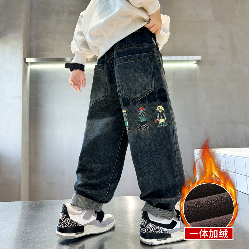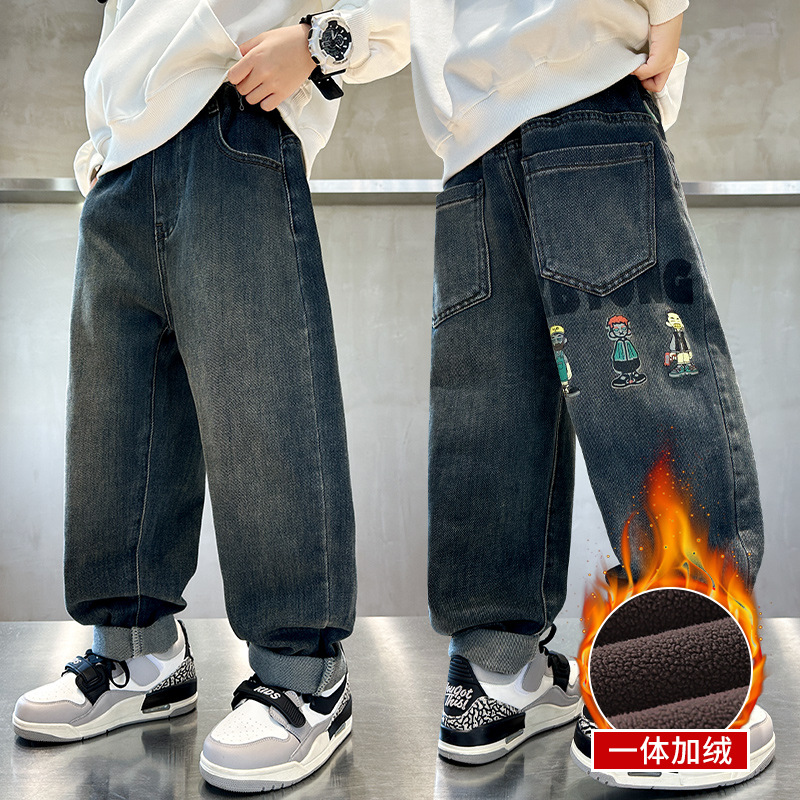 男童冬装裤子2025新款中大儿童男孩春冬款牛仔裤秋冬季加绒加厚