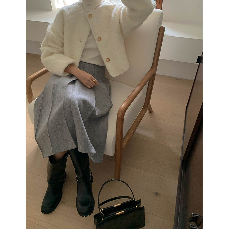 2025新款小香风韩国法式温柔宽松圆领毛感羊毛纯色毛呢短外套女