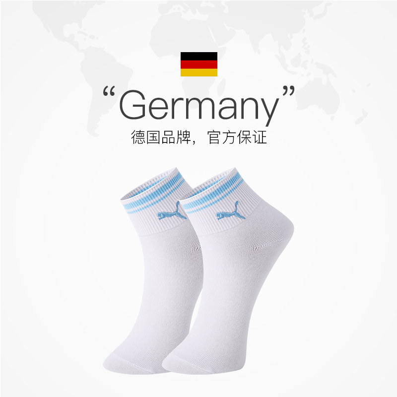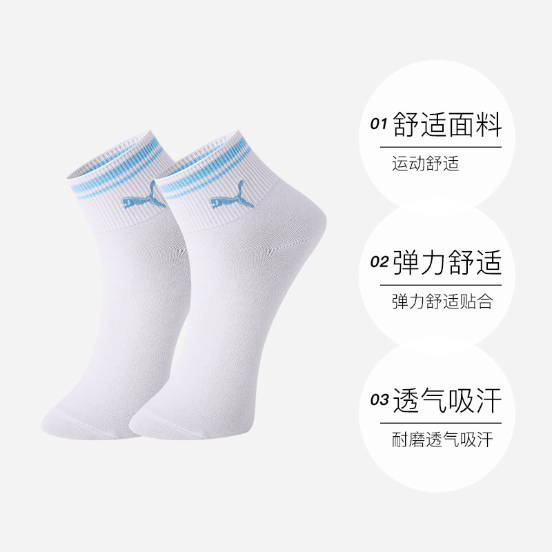 【自营】PUMA彪马袜子男女纯色百搭设计经典印花舒适中筒袜2双装