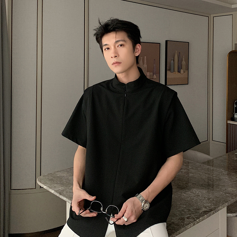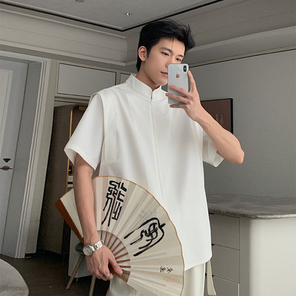 Hualun新中式衬衫男装夏季oversize衬衣短袖男生港风宽松休闲上衣
