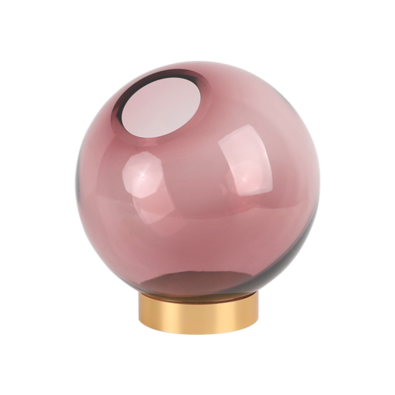 北欧轻奢风金色金属边圆球形玻璃花瓶家居软装饰品水Y培花器摆件