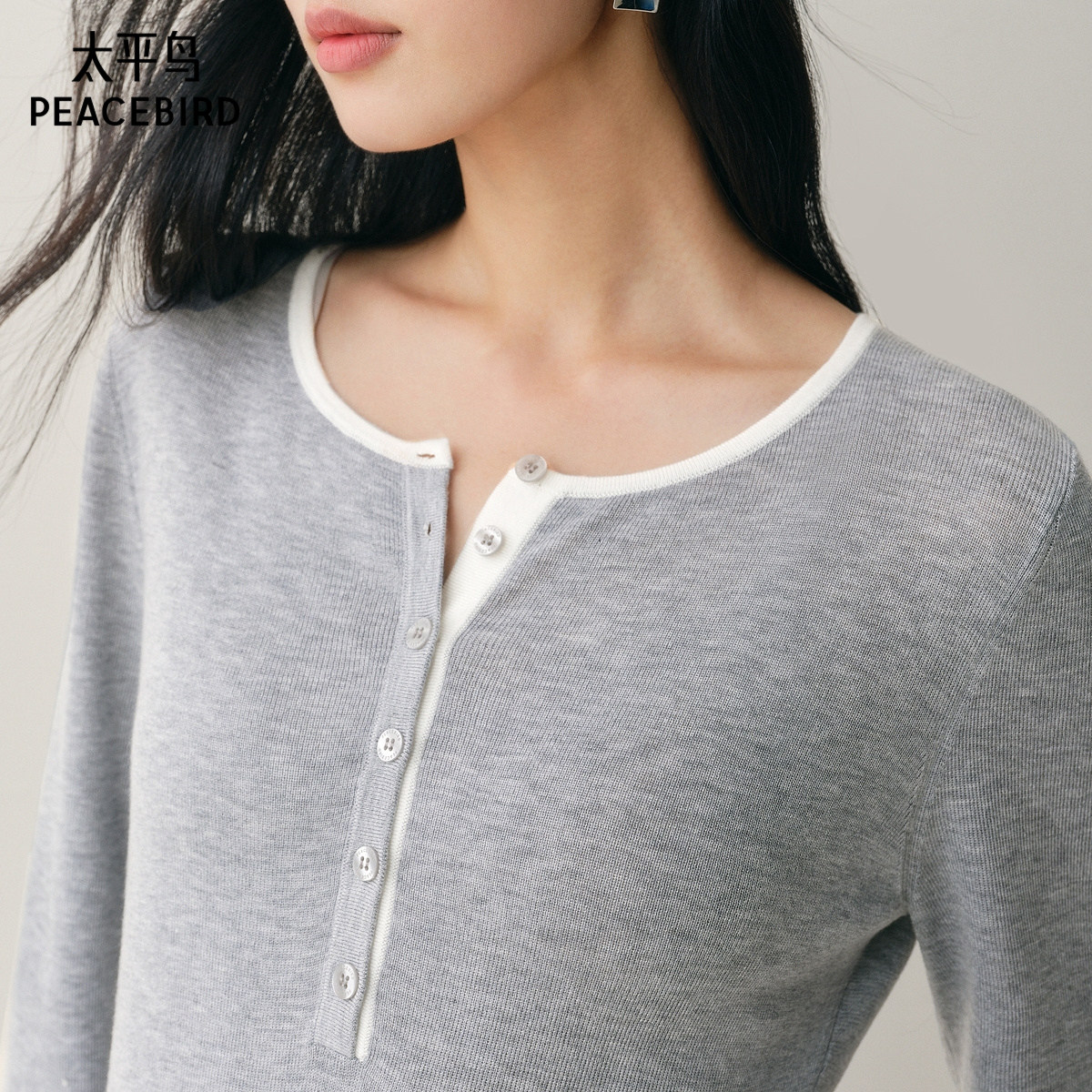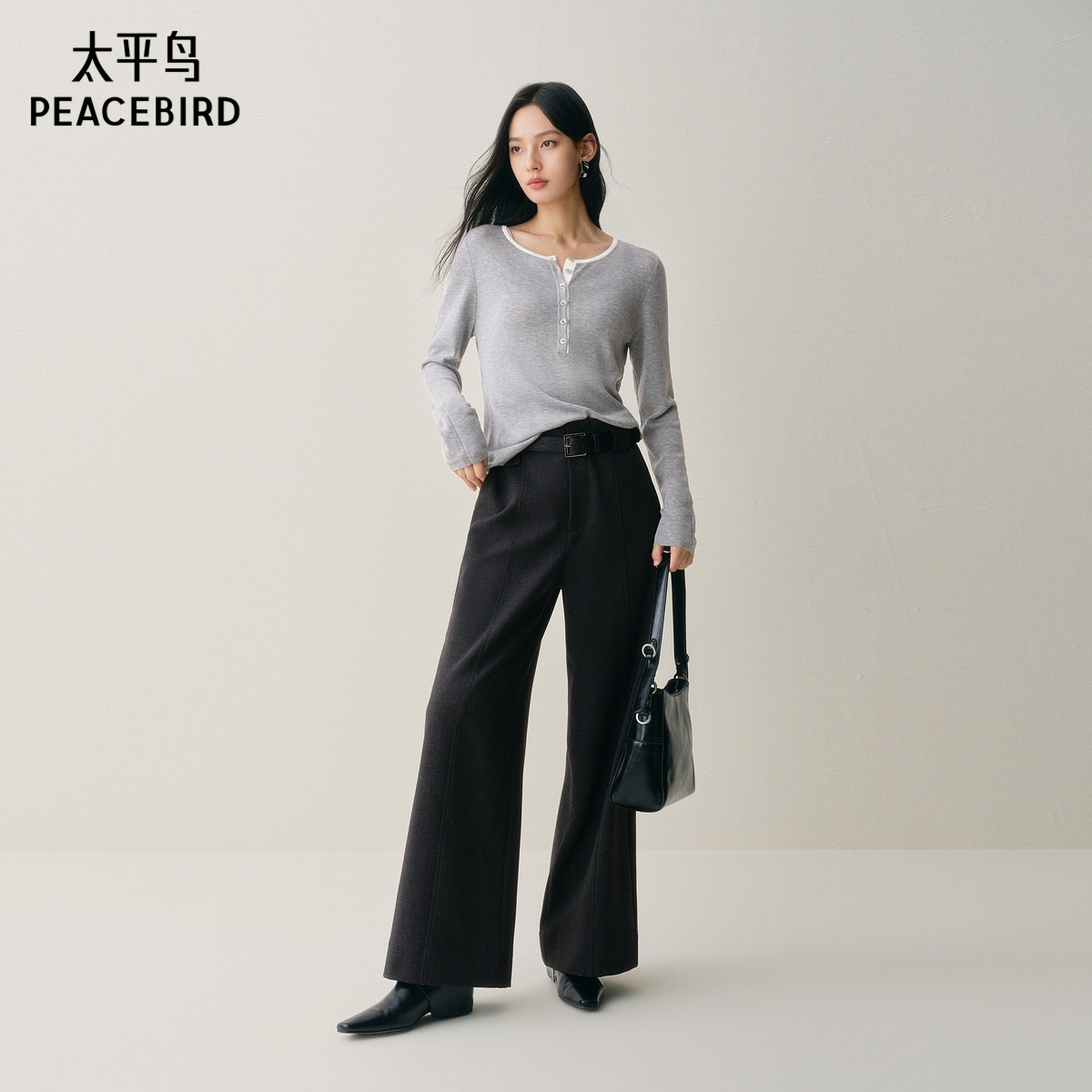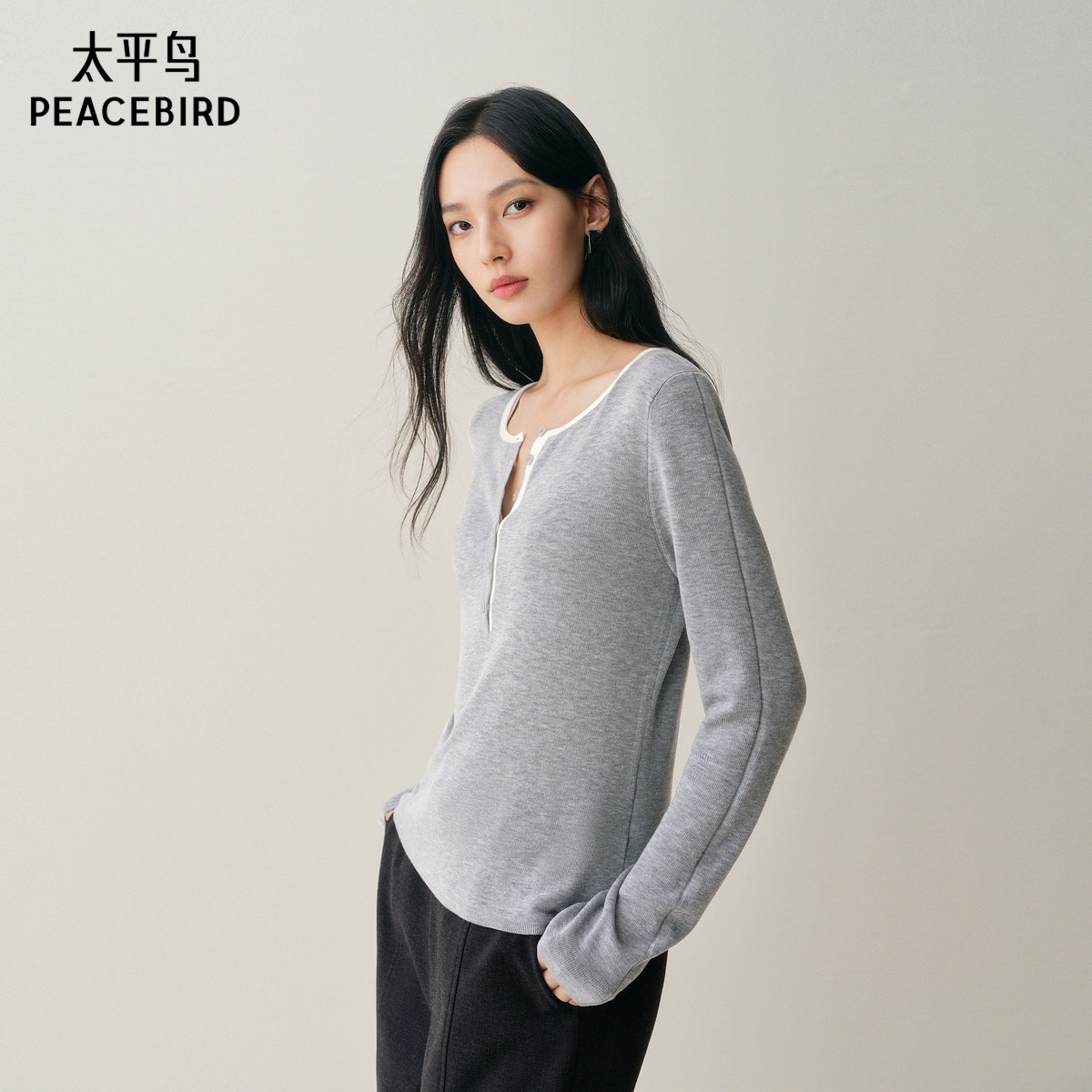 【商场同款】太平鸟25冬新款羊毛混纺亨利领针织打底衫A1EEF4177