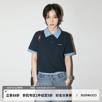 sameuoo散养文化「老友记」正肩短袖t恤Polo衫女中性风假两件上衣