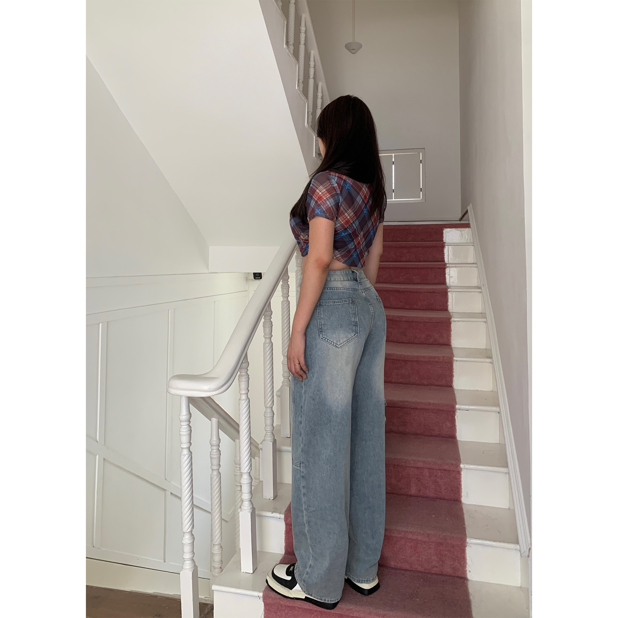 南黑微胖复古美式高街牛仔裤女2024新款大码胖mm高腰直筒显瘦长裤