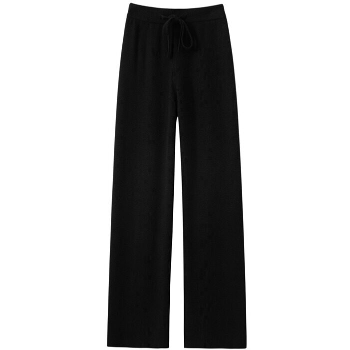 鄂尔多斯市秋冬厚款羊毛裤女垂感宽松直筒垂感外穿针织羊绒长裤女