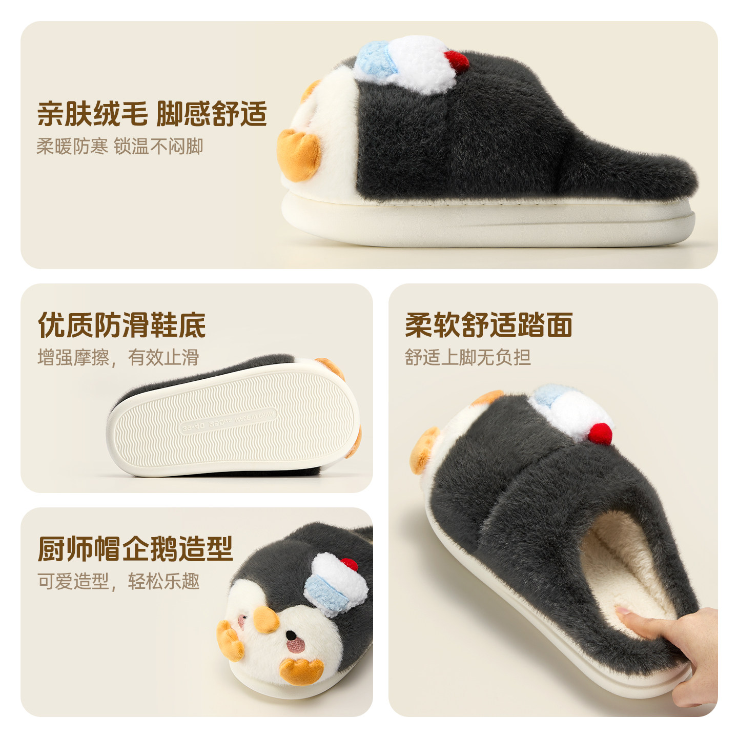 MINISO名创优品趣味企鹅棉拖鞋女冬季室内家居防滑保暖外穿厚可爱