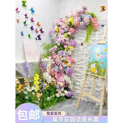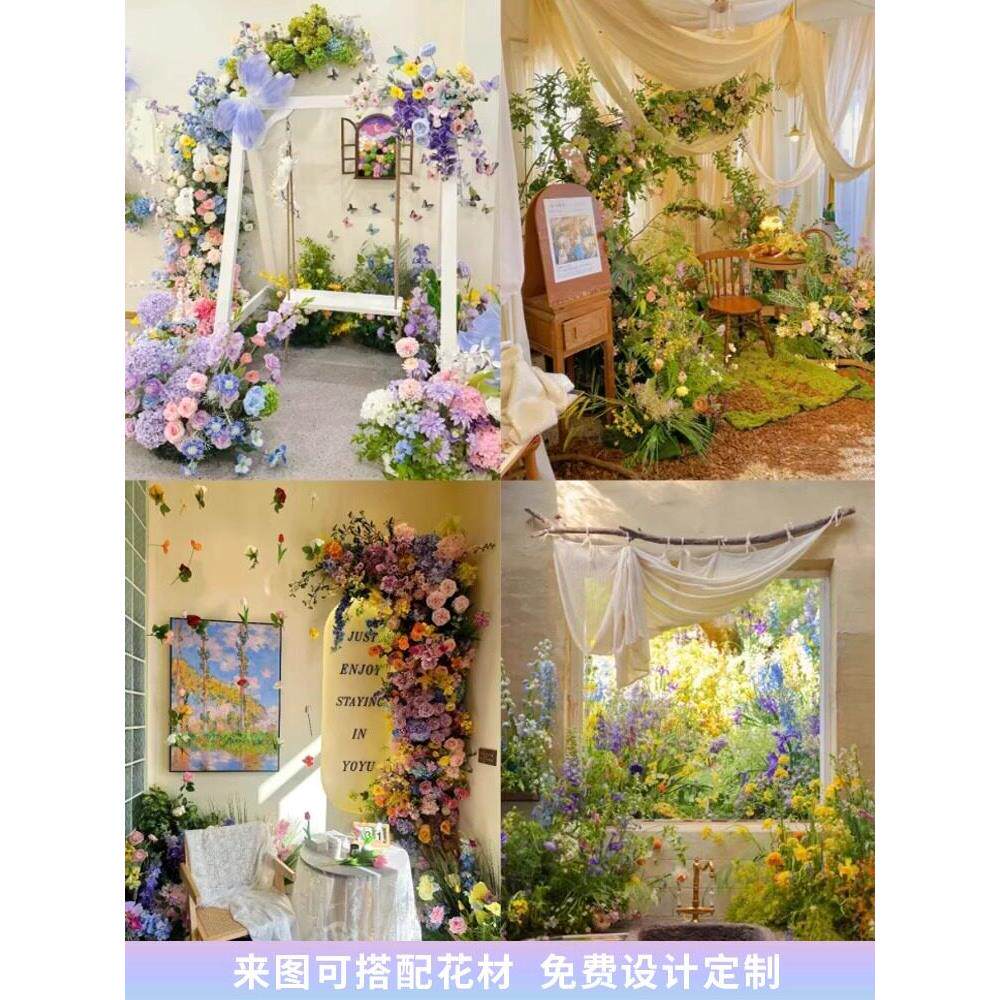 莫奈的花园模拟花卉景观玫瑰瀑布网红商店陈列装饰安排莫奈的橱窗