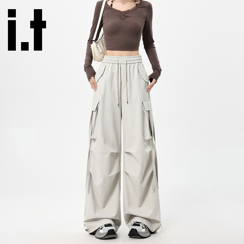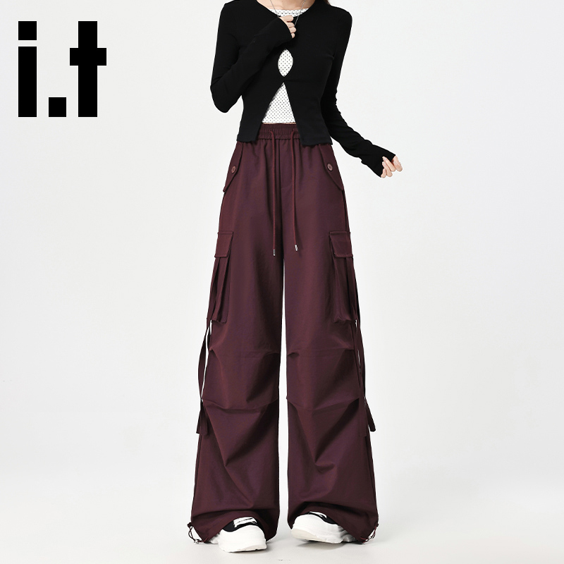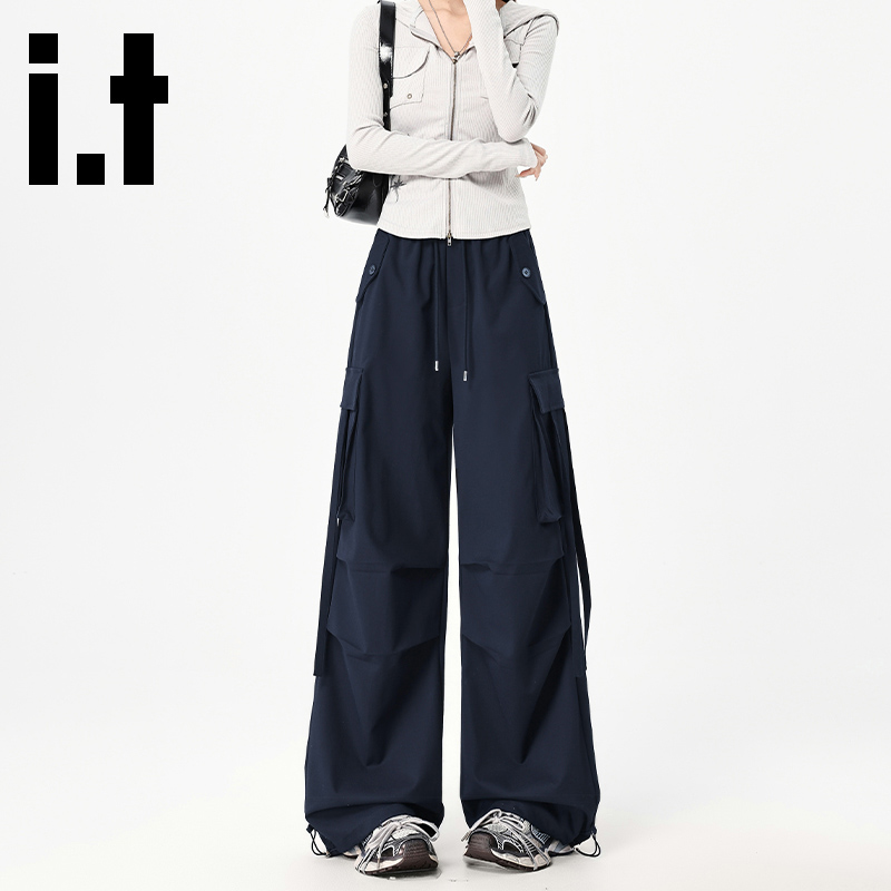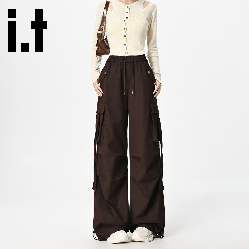 it:CHOCOOLATE抽绳束脚两穿阔腿裤女秋设计感高腰运动登山工装裤