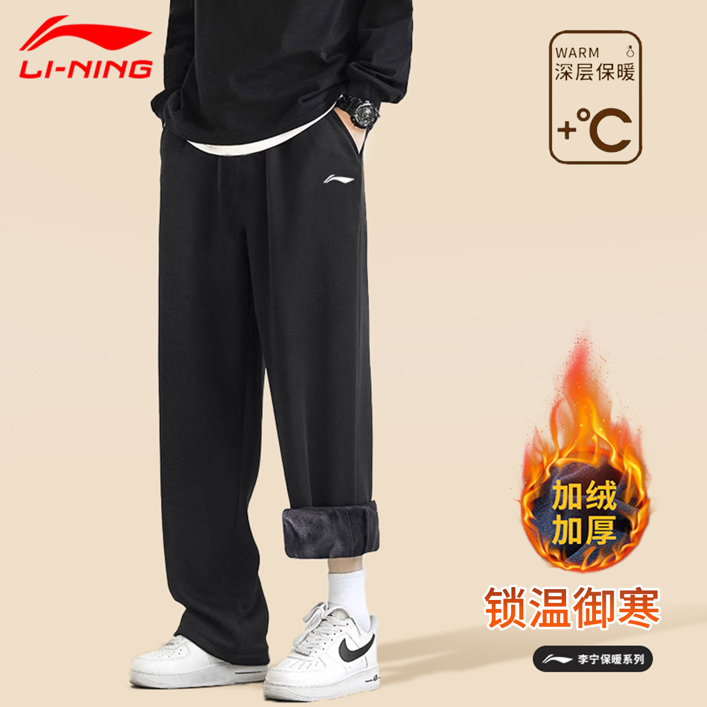 李宁运动裤男款冬季加绒加厚卫裤2025新款宽松户外跑步直筒休闲裤