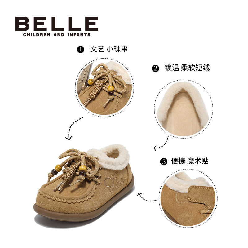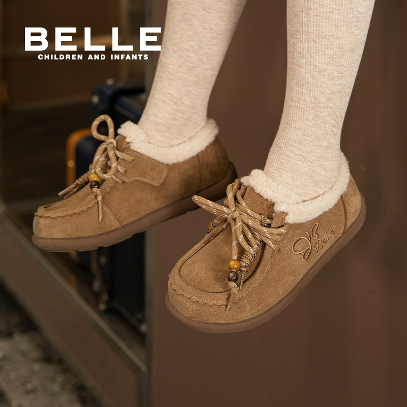 百丽童鞋女童加绒袋鼠棉鞋冬季新款小女孩保暖毛毛鞋儿童二棉鞋子