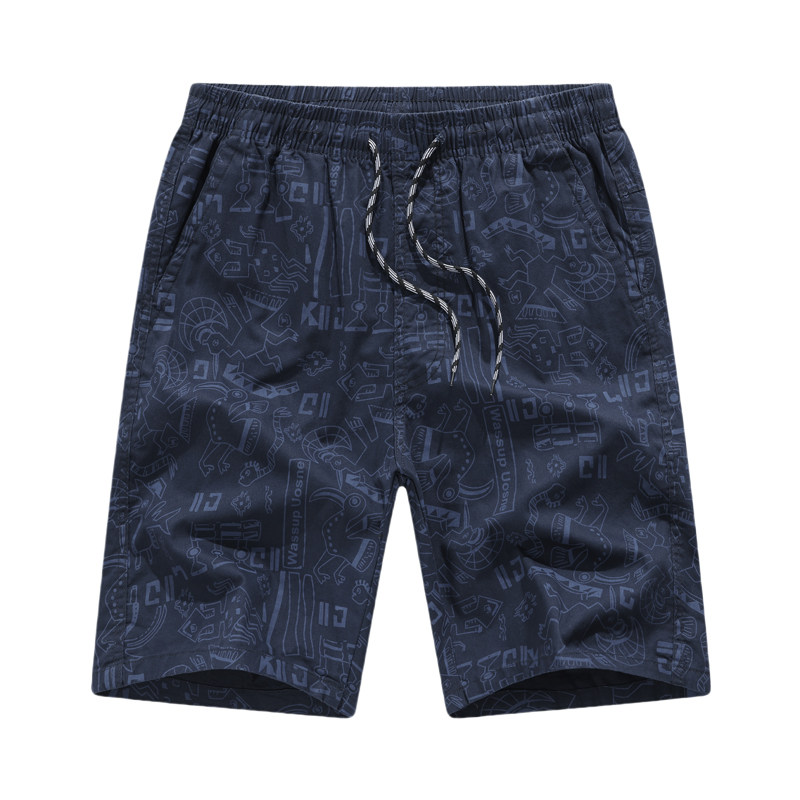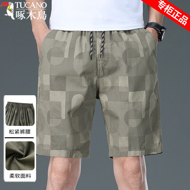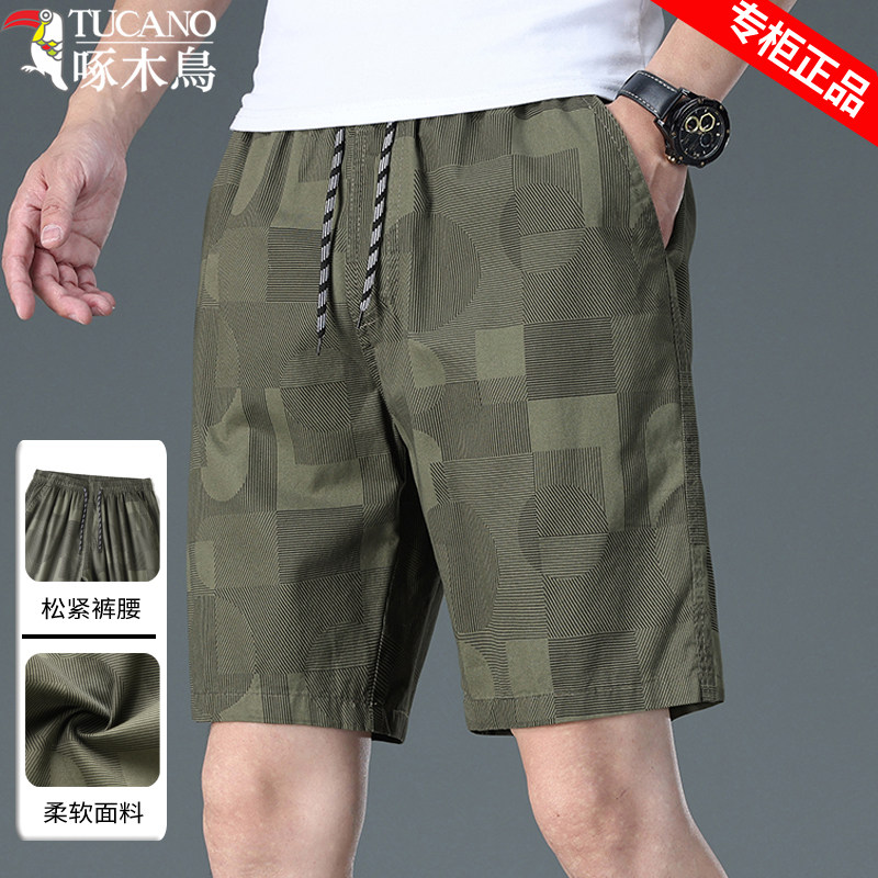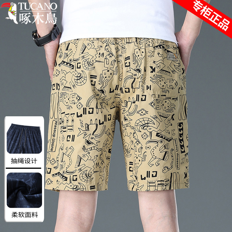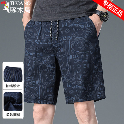啄木鸟印花休闲短裤男士夏季纯棉五分裤大裤衩外穿宽松直筒沙滩裤