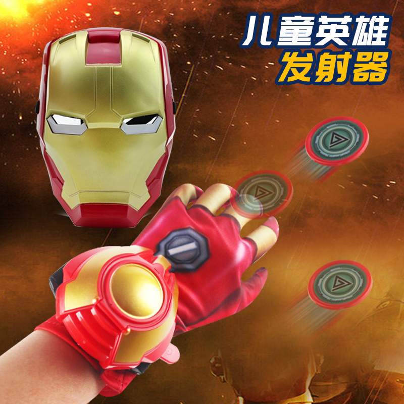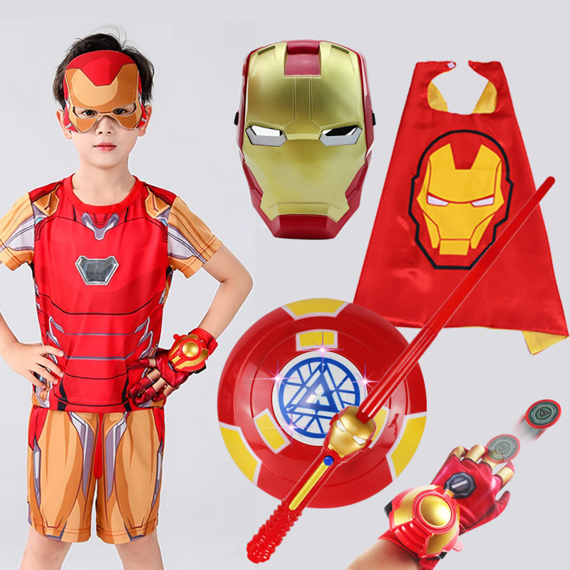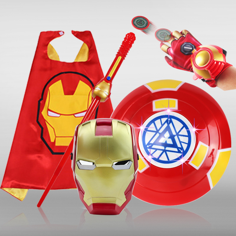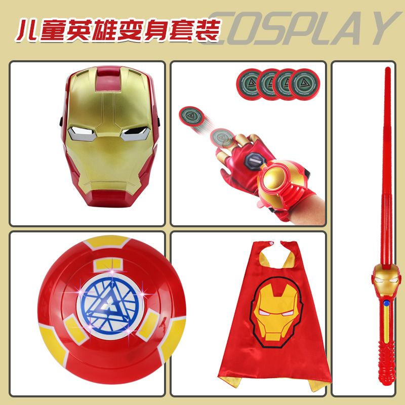 万圣节道具男孩钢铁侠头盔儿童发光面具cos装扮手套发射武器披风