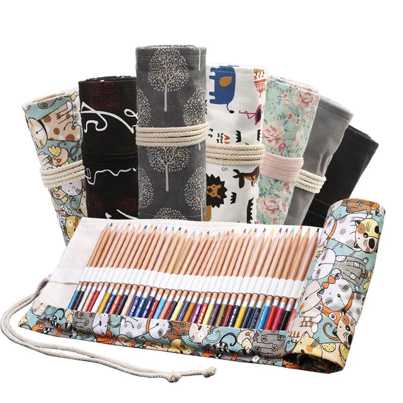 手工帆布笔帘36/48/72孔大容量卷笔袋 素描彩色铅笔V绘画文具