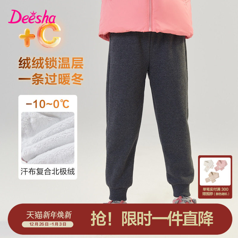 笛莎官方旗舰童装女童加绒运动裤冬季新款女孩儿童时尚保暖休闲裤