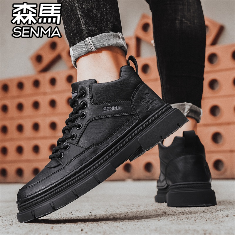 森马高帮男鞋秋季男士运动休闲中帮平板鞋防水防滑皮鞋真皮马丁靴