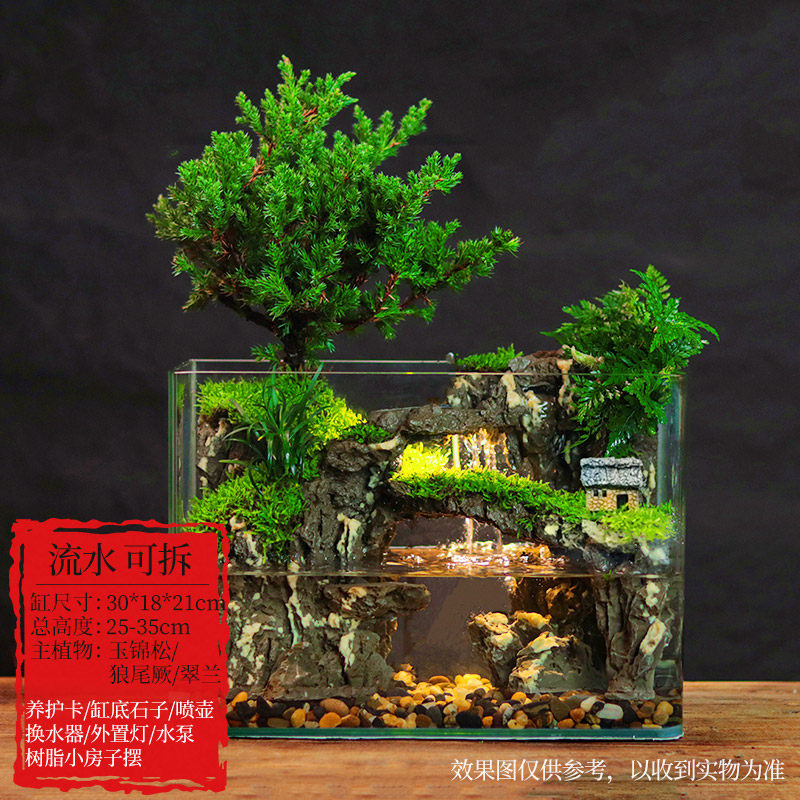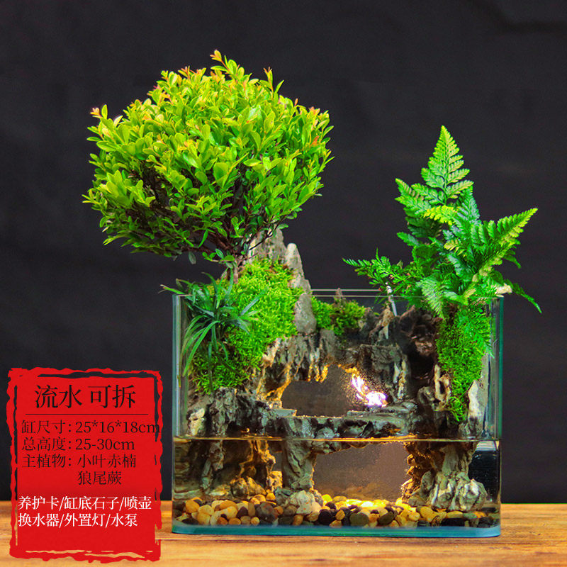 鱼缸桌面生态全套流水造景招财摆件微景观生态缸室内绿植鱼缸