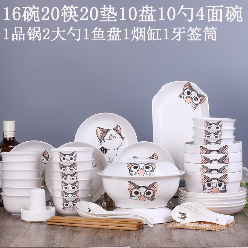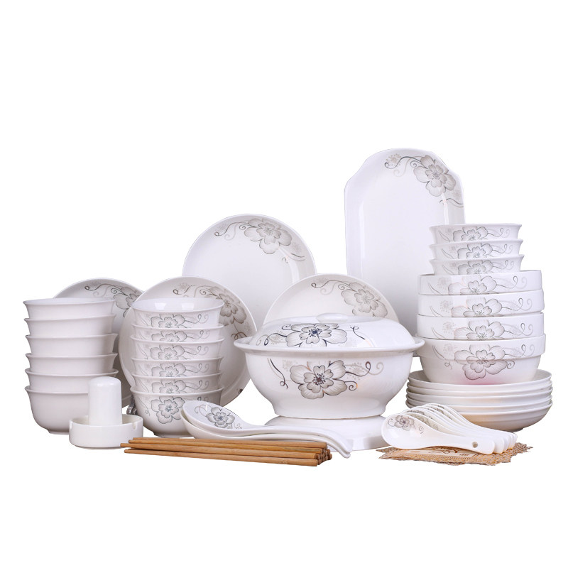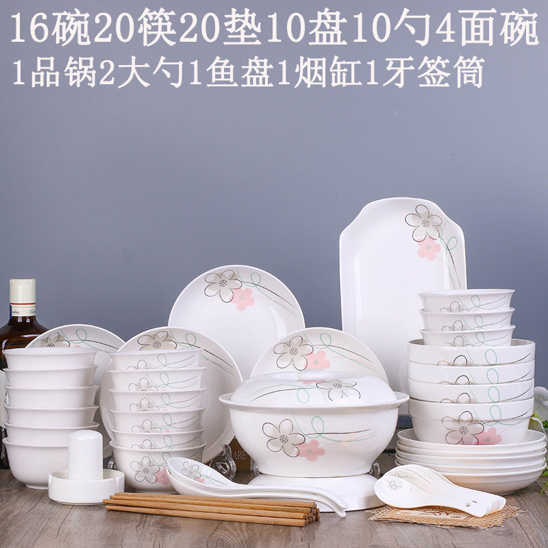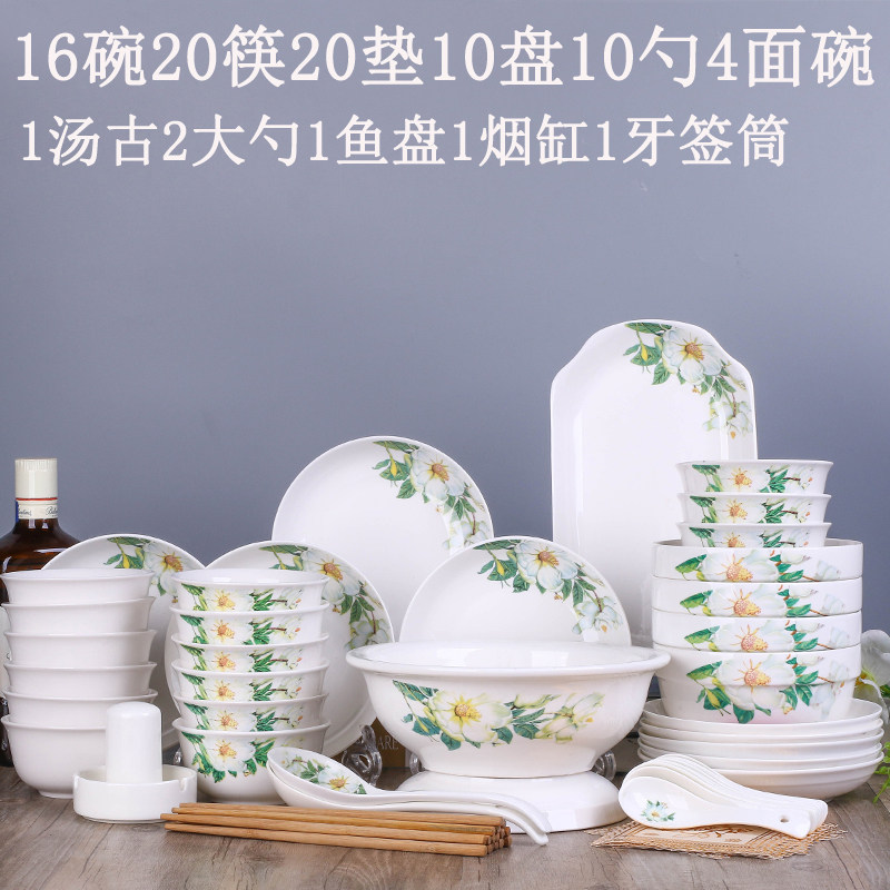 86件盘子碗组合餐具 家用特价碗碟套装 中式简约碗盘陶瓷器